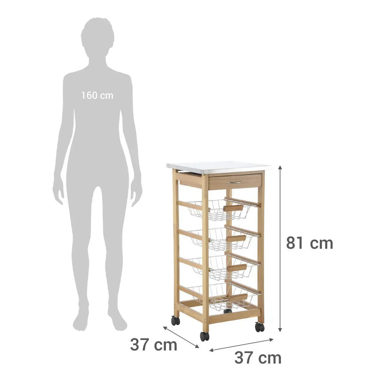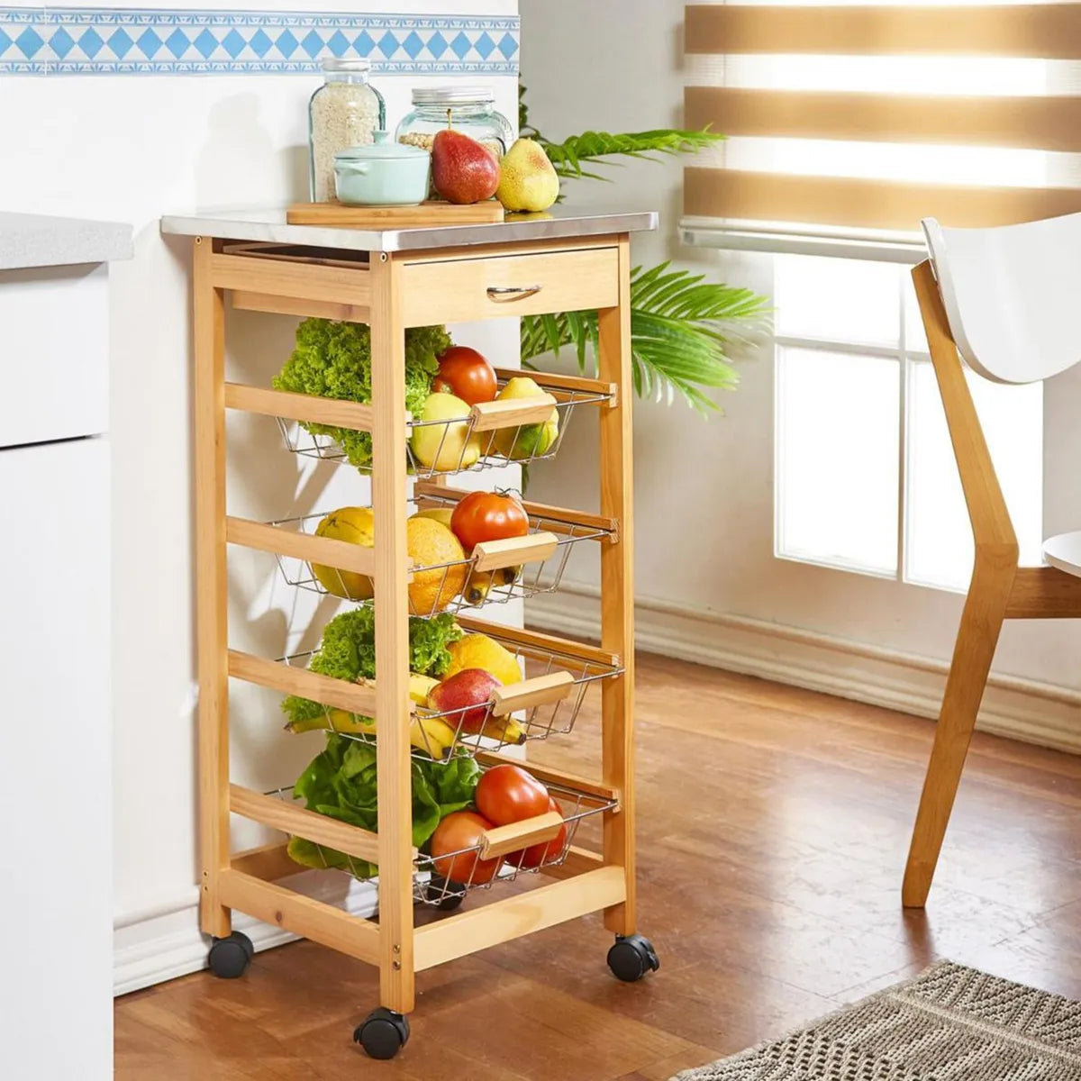 Dale un toque de estilo boho chic a tu cocina o terraza con este increíble carro organizador de verduras. Hecho de bambú café, este carro de 81 cm de alto te ofrece 4 canastos para organizar tus verduras, condimentos o cualquier cosa que necesites tener a mano. ¡Su diseño elegante y sus 4 ruedas lo hacen perfecto para cualquier espacio!