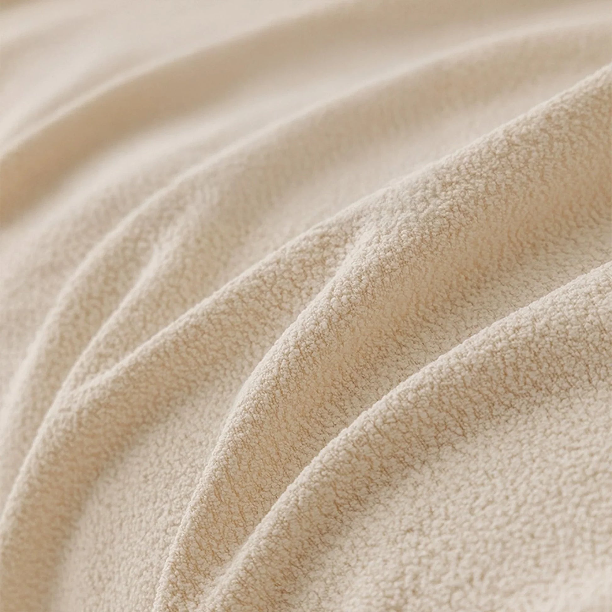 • Punto bouclé ultrasuave: transpirable, textura agradable para la piel y tacto acogedor para un lujo diario.
