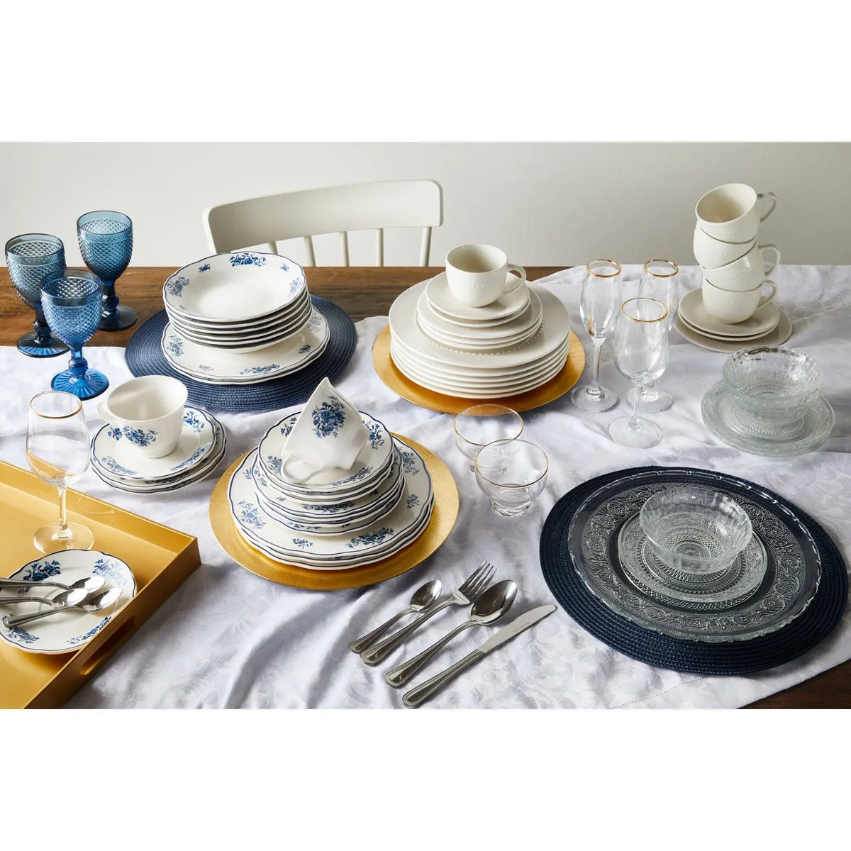 - Incluye 30 piezas: 6 platos hondos, 6 platos de postre, 6 platos soperos, 6 tazas de té y 6 platos de té.