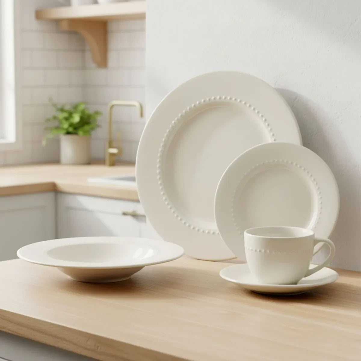 Juego De Vajilla Cerámica Blanca Puntos 30 Piezas Roberta Allen